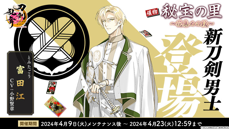 「刀剣乱舞ONLINE」,富田江(CV:小野賢章)が入手できるイベントを開催。新たな刀装「楽器兵」も登場