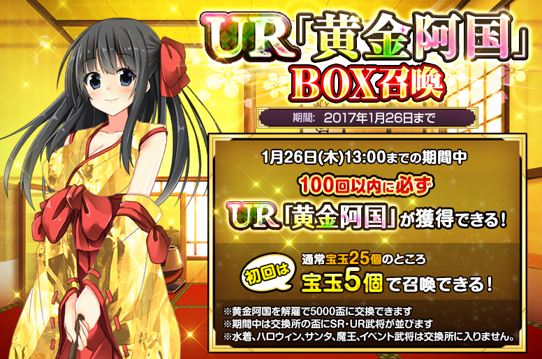 TSUTAYA版「戦国の神刃姫X」,「黄金阿国(UR)」と「今川義元(UR)」のBOX召喚が開催