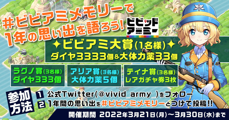「ビビッドアーミー」,記念ギフトや専用イベントが登場する3周年イベントを開催
